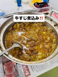 今朝のまかない(福利厚生)2025.12.27251227三力の福利厚生@週末のまかない今朝のまかないは、母特製の牛すじ煮込みでした社員の中には1キロ以上平らげる強者も味は、いつもの如く、ウマイここ数日が勝負、社員の皆さん、英気を養ってくださいね愛情たっぷり、ごちそうさまでした