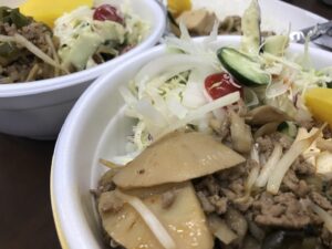 三力大日方です。本日の賄いは麻婆豆腐になります。具材はトーフ、ひき肉、玉ねぎ、舞茸、椎茸、ピーマン、茄子、タケノコになります。